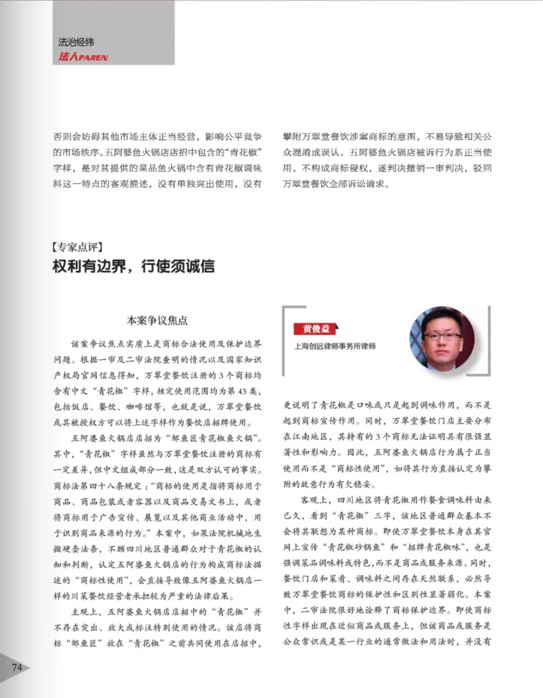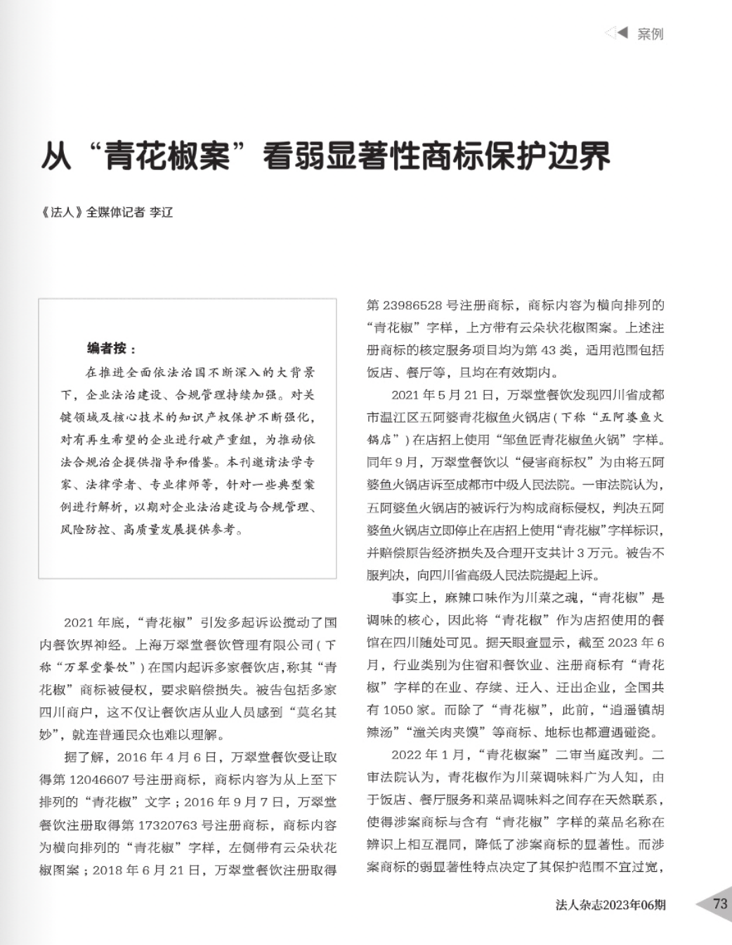 台州辉知简讯 | 辉知队黄俊益律师应“法治日报”旗下杂志邀请,就“青花椒”案发表专家点评