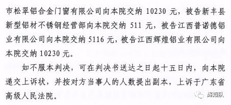 台州凤铝系列维权案:诉辉煌公司等四被告,法院判赔250余万